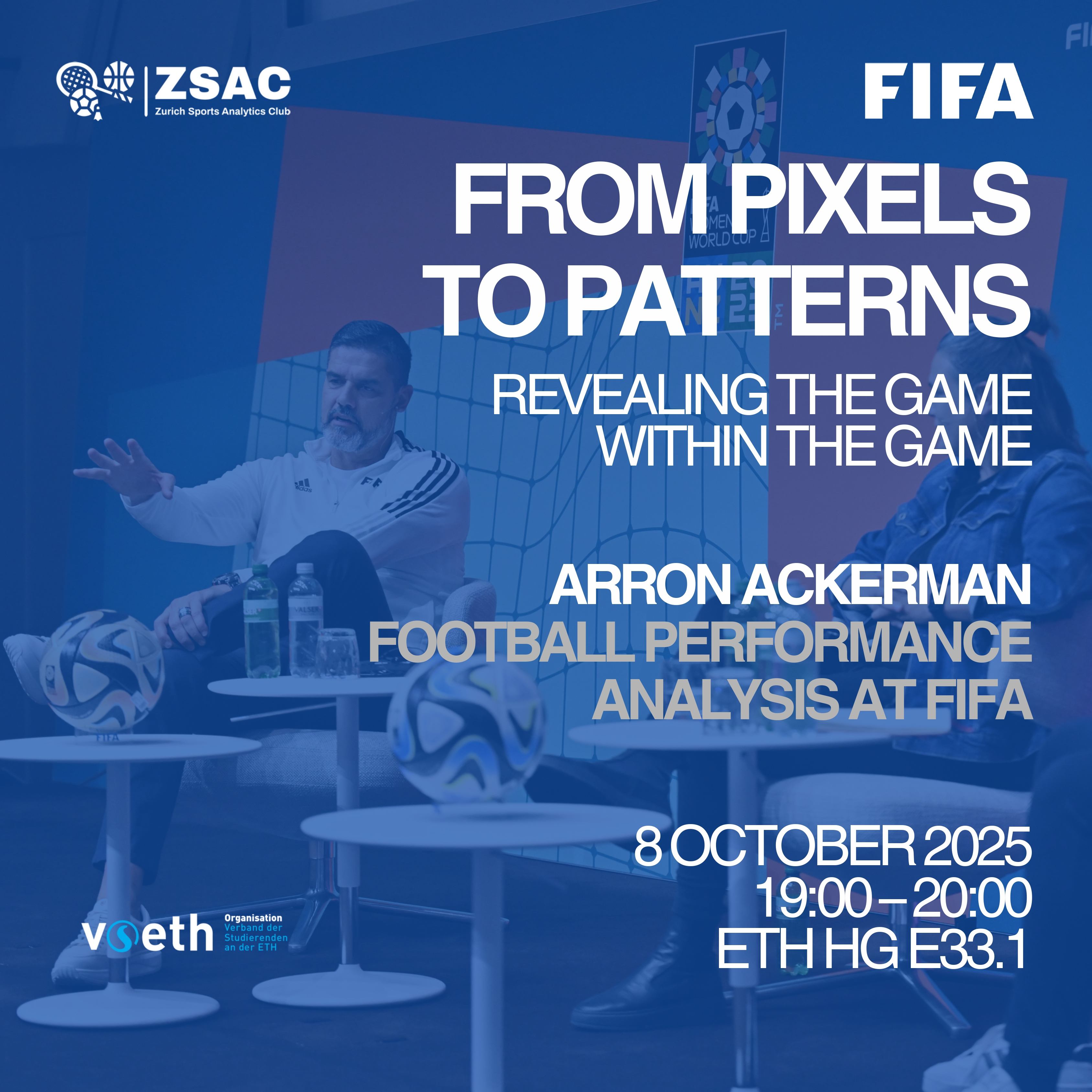 Join us on 8 October for “From Pixels to Patterns” with Arron Ackerman from FIFA, exploring how data reveals the game within the game.